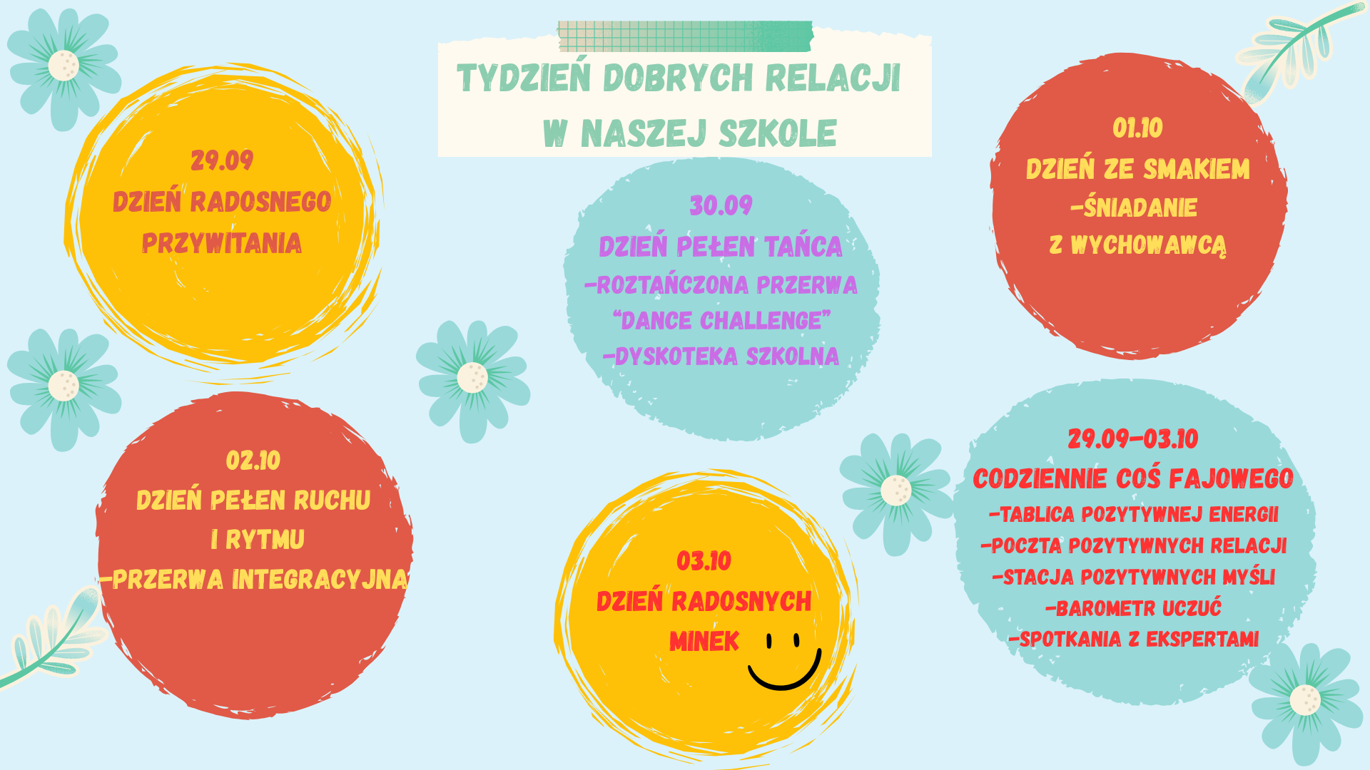 Już od 29 września do 3 października 2025 r. razem z innymi szkołami w całej Polsce będziemy świętować Tydzień Budowania Relacji. To wyjątkowy czas, w którym chcemy zatrzymać się na chwilę, spędzić ze sobą więcej dobrych chwil i zadbać o to, by w naszej szkole panowała życzliwość, empatia i wzajemne wsparcie.